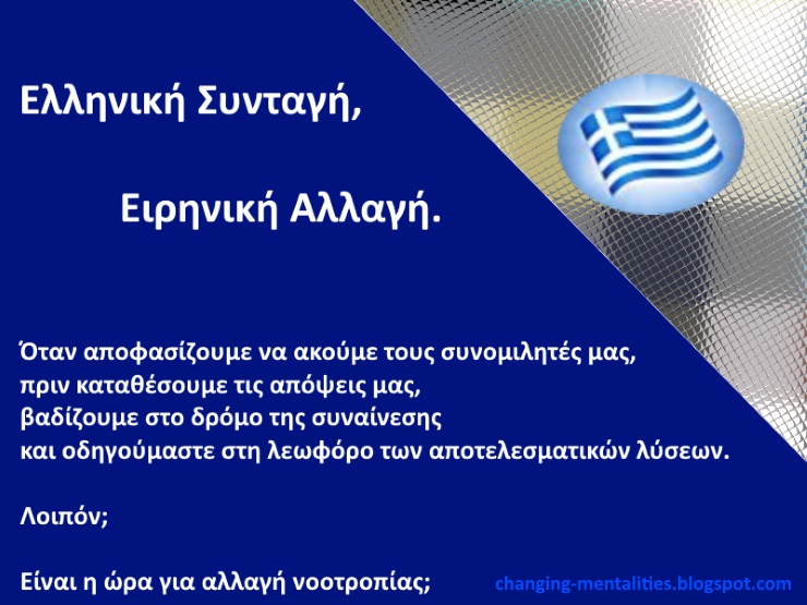 Ελληνική Συνταγή: Ειρηνική Αλλαγή, διότι δεν περισσεύει κανένας.
